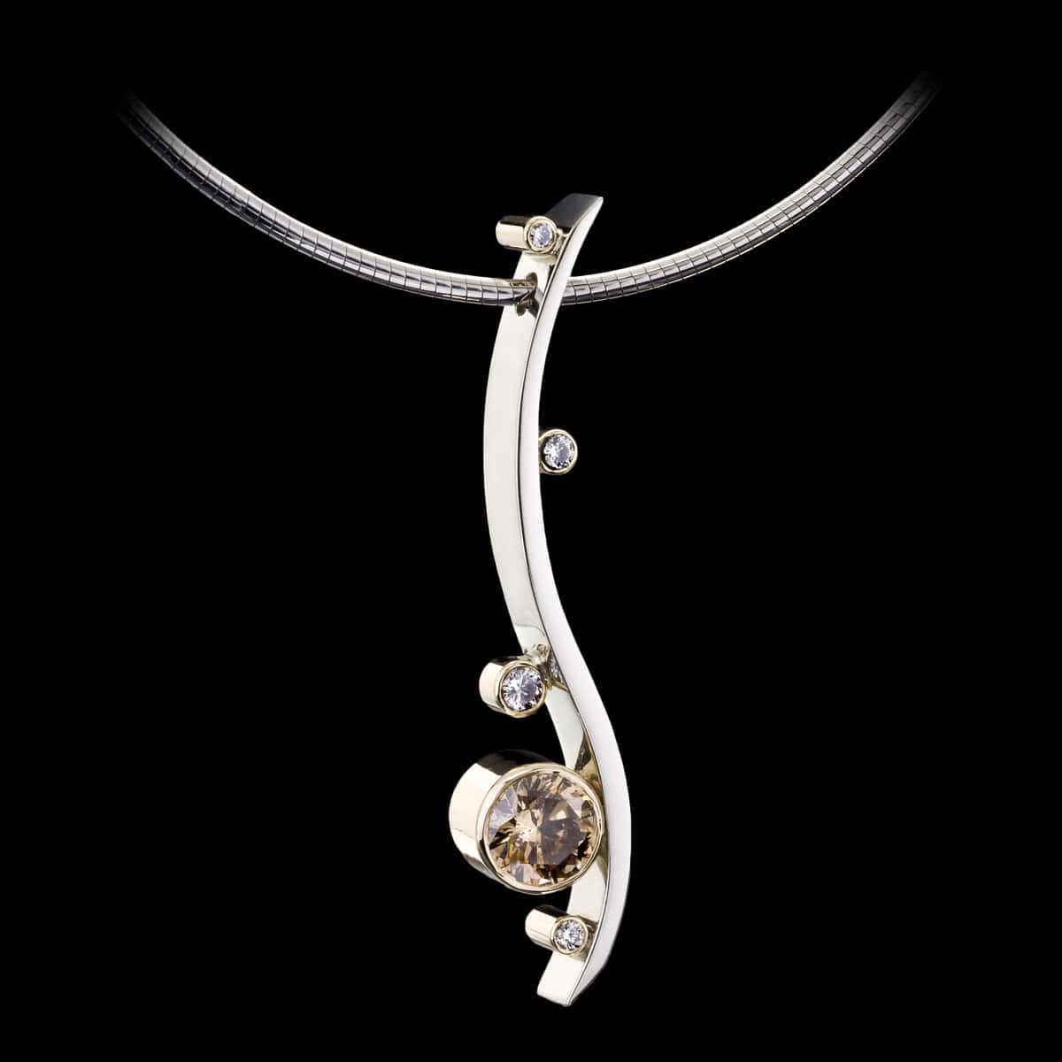 Covet diamond pendant is curvaceous and enchanting. This unique pendant design features diamonds set along a delicate curve of white gold.