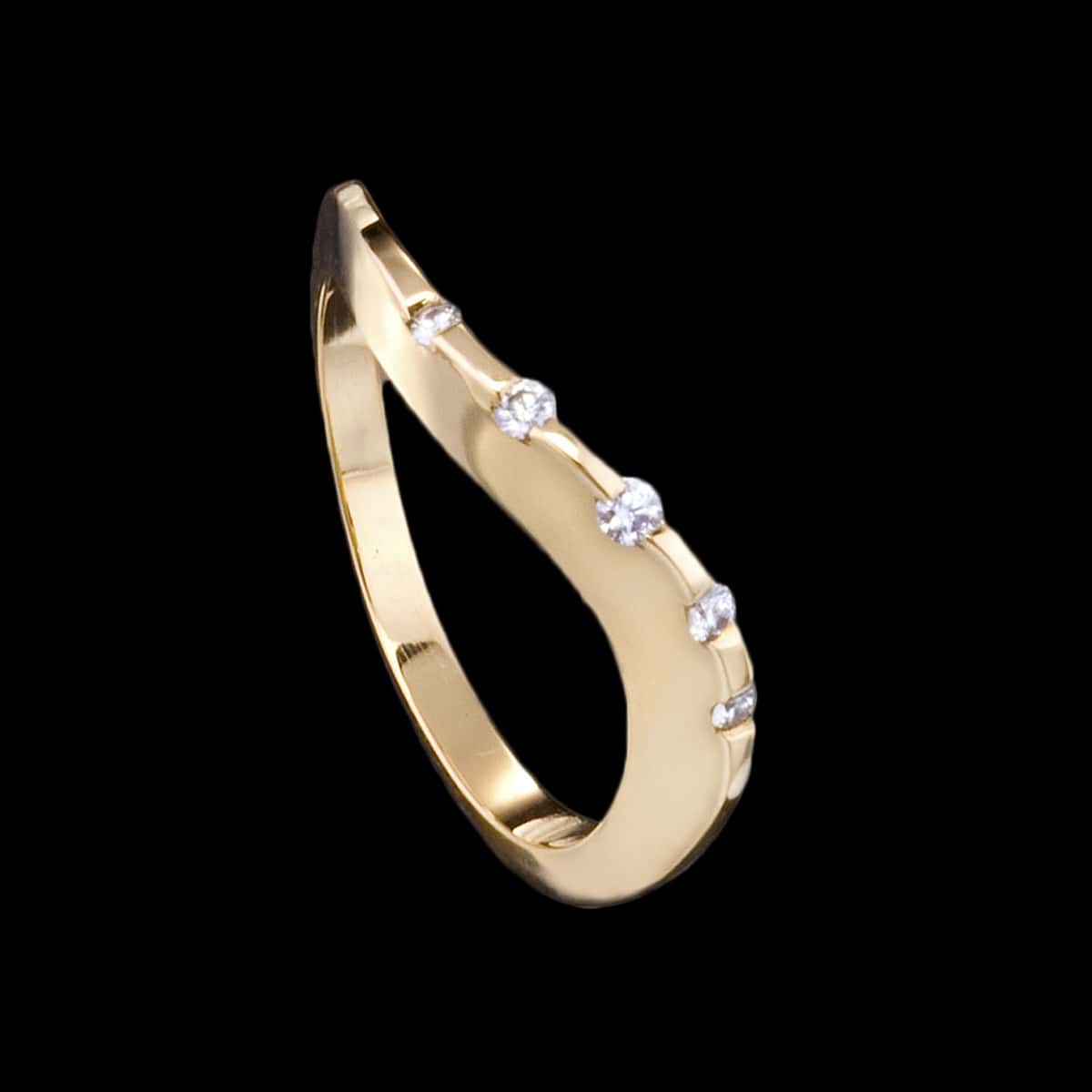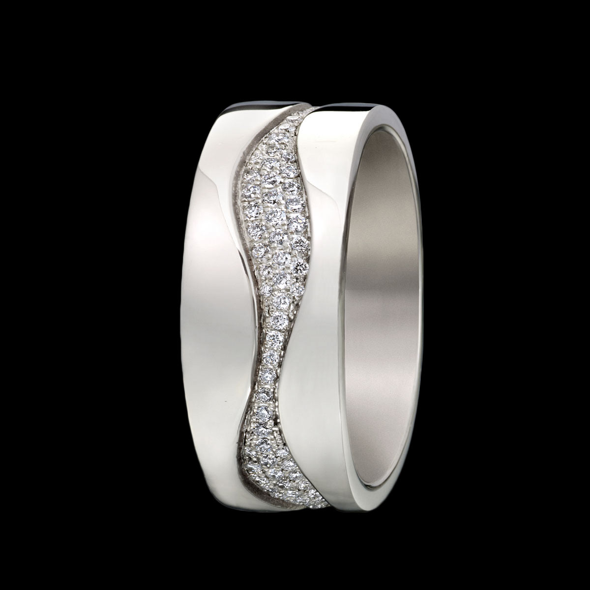 Rhythm Pave Diamond Ring is constant and strong. This modern men’s band features an undulating form of white diamond pavé embellishing a stately gold band.